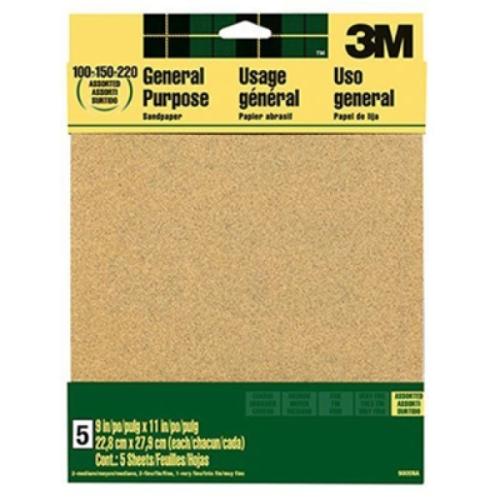 4444 SANDPAPER ASSORTED GRIT 5 PK 9 X 11 IN